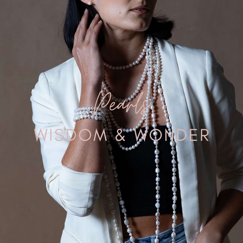 Protection: In various cultures, pearls were thought to provide protection, particularly to sailors. Legends spoke of pearls being formed from the tears of mermaids or angels, offering a divine safeguard. Our meter long stands of Pearl Necklaces in white or Pearl Necklaces in blush pinks and champagne colours can be worn long or doubled for layering.